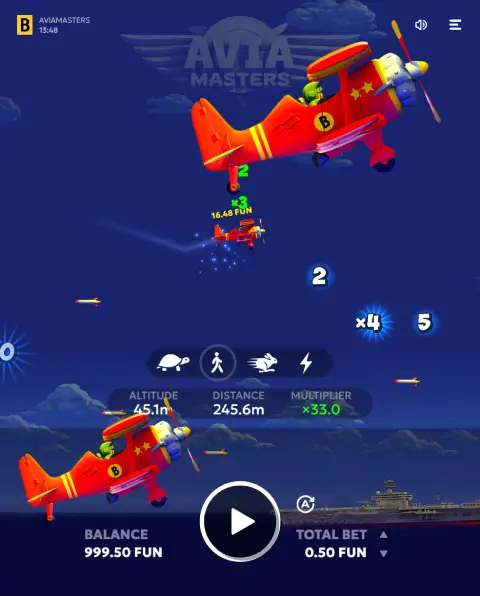 Aviamasters — это онлайн краш игра от BGaming, где игрок делает ставку и наблюдает за полетом самолетика. Во время раунда коэффициент постепенно увеличивается, и игрок может забрать выигрыш до завершения полета.